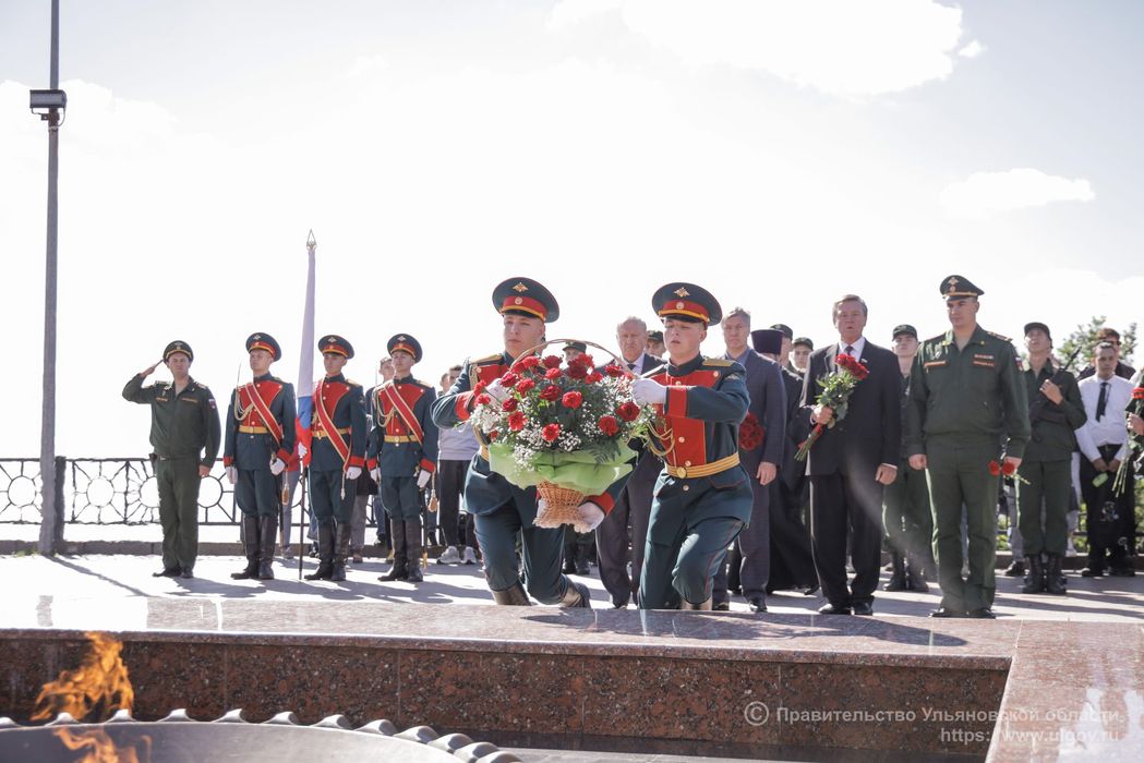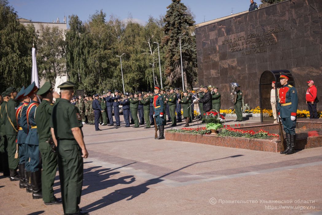 03.09.2022 На площади 30-летия Победы состоялась церемония возложения цветов к монументу Вечный огонь, приуроченная ко Дню окончания Второй мировой войны