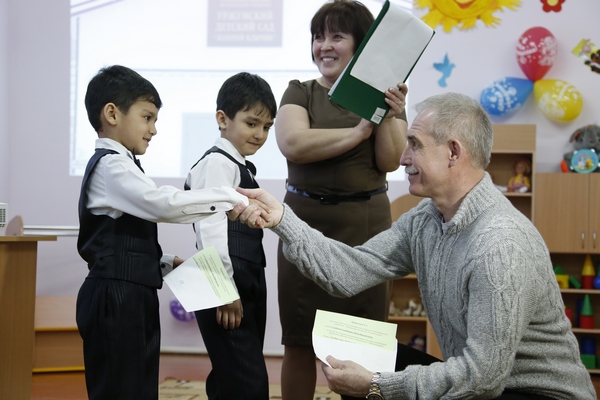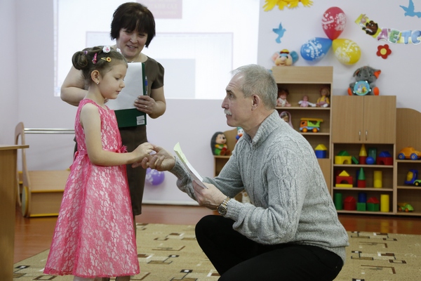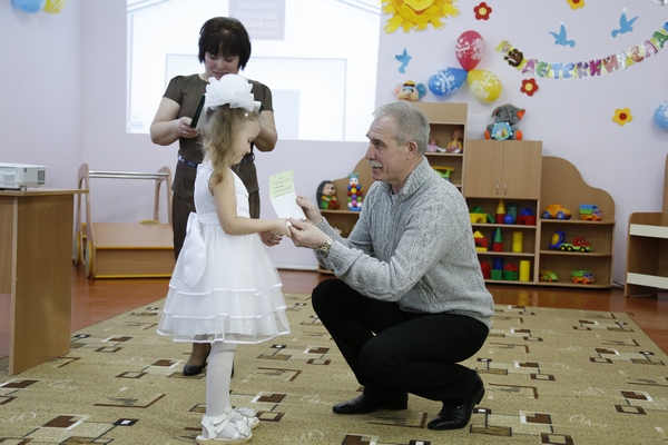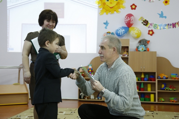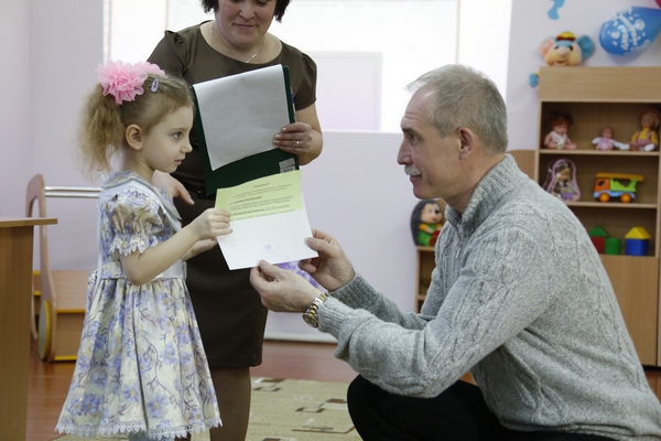 После осмотра учреждения глава региона передал детскому саду сертификат на приобретение мультимедийного комплекса.