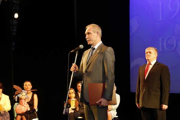 «Вы посвятили свою жизнь благородному делу, которое заслуживает глубочайшего уважения и всеобщей признательности. Многие годы вы «сеете разумное, доброе, вечное», учите своих доверчивых, но требовательных зрителей верному пониманию окружающего мира и щедро дарите счастье, уют и тепло. Через утверждение высочайших нравственных ценностей вы успешно выполняете важнейшую государственную задачу – воспитываете в наших детях истинный патриотизм и желание изменить мир к лучшему, - сказал Сергей Морозов. – Ваш замечательный коллектив широко известен за пределами области. Его лучшие спектакли с благодарностью и теплотой вспоминают везде, где проходили гастроли. Я благодарю вас за верность профессии и служение искусству».