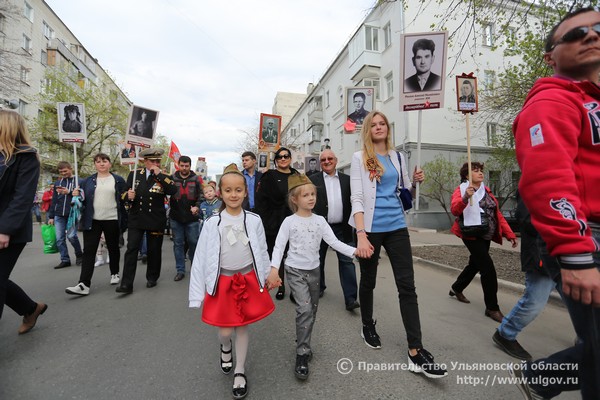 По словам и.о. Министра образования и науки Натальи Семёновой, Ульяновская область уже третий раз принимает участие в этом важном мероприятии. С каждым годом увеличивается количество тех, кто хочет пройти в рядах «полка». «Это одно из немногих событий, которое объединяет абсолютно всех. Среди участников этого года много пожилых людей, молодежи, и, конечно же, ветеранов. Кто-то шел с портретами своих родственников, кто-то - со снимками однополчан-сослуживцев, так и не доживших до Дня Победы. Самое главное, это ни с чем несравнимый гражданский порыв. Тысячи жителей приходят осознанно целыми семьями. Это здорово, что каждый их них считает этот праздник своим, присутствует чувство сопричастности», - сказала Наталья Семёнова.