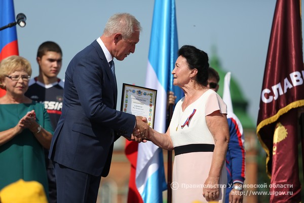 На площади Ленина прошло торжественное шествие, в котором приняли участие более трех тысяч человек, в том числе представители трудовых и общественных организаций, молодежных объединений, воспитанники патриотических клубов, спортивных секций. Волонтеры пронесли 40-метровый триколор с площади В.И. Ленина на площадь 100–летия со дня рождения В.И. Ленина. Впервые на Дне Государственного флага Губернатор Сергей Морозов вручил сертификаты жителям Ульяновской области, которые внесены в региональную Книгу почета «Герои малой Родины».
