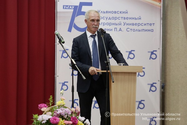 Глава региона поздравил преподавателей, сотрудников, студентов, аспирантов, выпускников и ветеранов вуза с праздничной датой и подчеркнул, что университет является образцом служения науке и Отечеству, ориентиром для учебных учреждений региона и страны. «Около 50 тысяч выпускников работают на нашей земле, применяя знания и оттачивая умения. Они успешно трудились и продолжают трудиться в различных отраслях экономики, ведут профессиональную, научную, преподавательскую деятельность, занимают ответственные посты в органах хозяйственного и государственного управления. Ульяновский аграрный университет широко известен не только как великолепная кузница кадров, но и как локомотив научно-технического прогресса регионального и отечественного сельского хозяйства, хорошо известный за пределами страны. Новизна и актуальность научных разработок подтверждается обилием патентов на изобретения. Только за последние пять лет сотрудники, аспиранты и студенты университета получили 542 патента. Это один из лучших показателей среди аграрных вузов страны. Огромным, перспективным направлением сотрудничества региональной власти и аграрного университета стала работа по созданию и развитию научно-образовательного кластера агропромышленного комплекса Ульяновской области. И сегодня он успешно функционирует», - заключил глава региона.