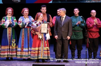 Ульяновцев также поздравил митрополит Симбирский и Новоспасский Лонгин и вручил приз за лучшее исполнение духовного стиха Народному коллективу ансамбля русской песни «Горлица» Свердловской области.