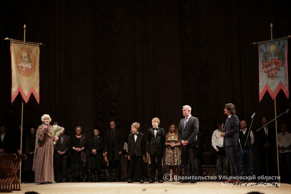 Диплом о присвоении почетного звания и бронзовая статуэтка вручены Губернатором Сергеем Морозовым ульяновской актрисе в день рождения Народного артиста России, лауреата Государственной премии РФ Бориса Александрова в дни театрального фестиваля имени мастера.