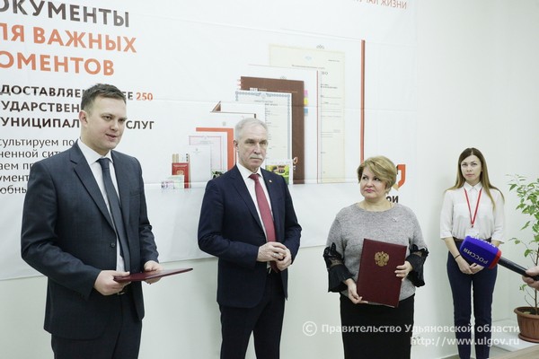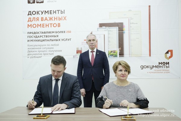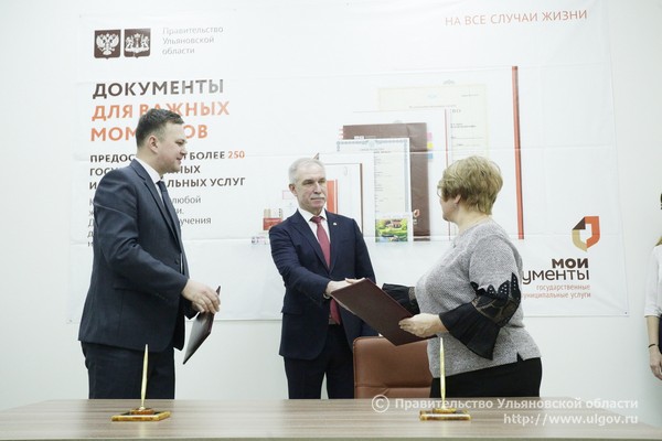 В этот же день на площадке «Мои Документы» состоялось подписание соглашения между Уполномоченным по защите прав потребителей в Ульяновской области Константином Толкачёвым и директором ОГКУ «Правительство для граждан» Светланой Опенышевой. Согласно документу ульяновцы смогут получать бесплатные консультационные и юридические услуги по защите своих прав в МФЦ. В настоящее время такие услуги доступны в центре «Мои Документы» Ленинского района Ульяновска. Планируется, что в скором времени они будут предоставляться во всех многофункциональных центрах региона.