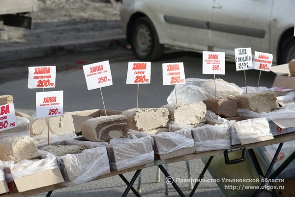 На ярмарке была проведена дегустация продукции следующих товаропроизводителей: ООО «Ульяновскхлебпром» – хлебобулочная продукция, ООО «Сладис» – кондитерские изделия, АО «Тепличное», ИП «Немова Т.А.» – овощная продукция, ООО «Калатея» из Барышского района, КФХ «Елифанова Т.В.» из Новомалыклинского района, ЛПХ «Мусаева Р.А.» из Мелекесского района – молочная продукция, ООО «Волжский бекон», СПССК «Мясной двор» из Майнского района, ИП «Попенец И.В.» из Ульяновска, КФХ ИП «Жуков В.И.» из Сенгилеевского района – мясные, колбасные изделия и мясные полуфабрикаты, ЛПХ «Тихоненко В.Г.» из Ульяновского района, ЛПХ «Нуянзин Н.В.» из Димитровграда – мёд. Также дегустацию реализуемой продукции на ярмарке представили ИП «Файсханова А.Н.» из Димитровграда – фрукты, ИП «Дьяконова Л.М.» из Ульяновска – молочная продукция, сыр и другие.