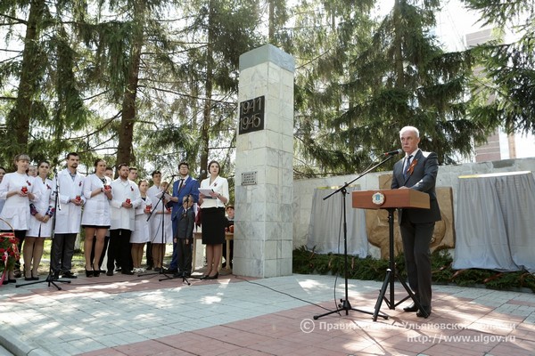 «Совсем скоро наша страна будет отмечать особый праздник Великой Победы. День светлой печали и ликующей радости торжества, нашей общей памяти и великого подвига, который в каждом из нас. Сегодня мы открываем мемориальную доску с именами медицинских работников Ульяновской области, внёсших свой вклад в приближение Победы нашего народа над фашистской Германией. Те испытания, которые выпали на вашу долю, подвластно было вынести только людям смелым и сильным духом, отважным, мужественным, любящим свою Родину. Этот праздник стал символом героизма нашего народа, его несгибаемой стойкости и несокрушимости духа. Бережное отношение старшего поколения к судьбе своей Родины должно стать для всех ярким примером патриотизма и силы народной веры. От всей души поздравляю вас с наступающим праздником, Днём Победы в Великой Отечественной войне! Годы уходят, но память о подвиге наших героев не меркнет. Низкий поклон вам, наши фронтовики, труженики тыла, вдовы и дети войны. Пусть небо будет безоблачным, а окружающие вас люди делают все возможное, чтобы вы были здоровы и счастливы», – поздравил участников митинга Губернатор.