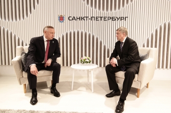 На ПМЭФ-2023 Губернатор Санкт-Петербурга Александр Беглов обсудил с Губернатором Ульяновской области Алексеем Русских новые направления торгово-экономического, научно-технического и культурного сотрудничества.