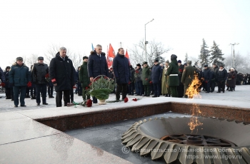 Торжественная церемония возложения цветов к мемориалу воинской славы «Вечный огонь» состоялась 9 декабря. В мероприятии принял участие Губернатор Алексей Русских.