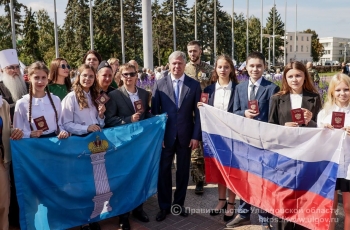 В рамках празднования Дня флага состоялась акция «Мы – граждане России» Российского Союза Молодёжи и Российского движения детей и молодёжи «Движение Первых», в ходе которой 14 паспортов от главы региона и почётных гостей в торжественной обстановке получили 14-летние жители региона, в том числе дети участников специальной военной операции.