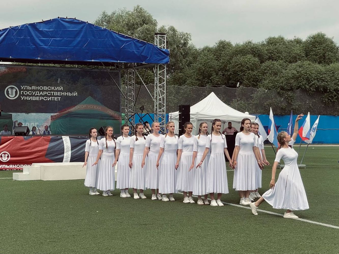 Ежегодно выпускной начинается с традиционного шествия от Обелиска Славы под звуки барабанов и оркестра. Шествие завершилось на стадионе УлГУ, где творческие коллективы учебного заведения выступили с яркой программой. В торжественном параде по стадиону вместе со своими деканами прошли лучшие выпускники всех факультетов.